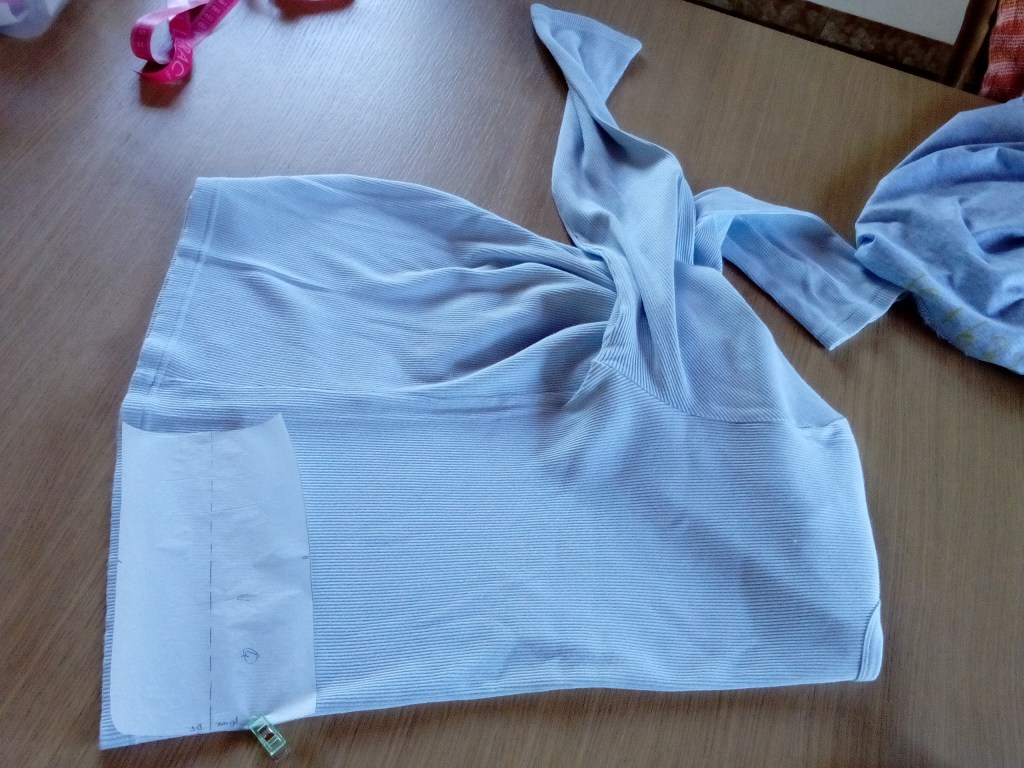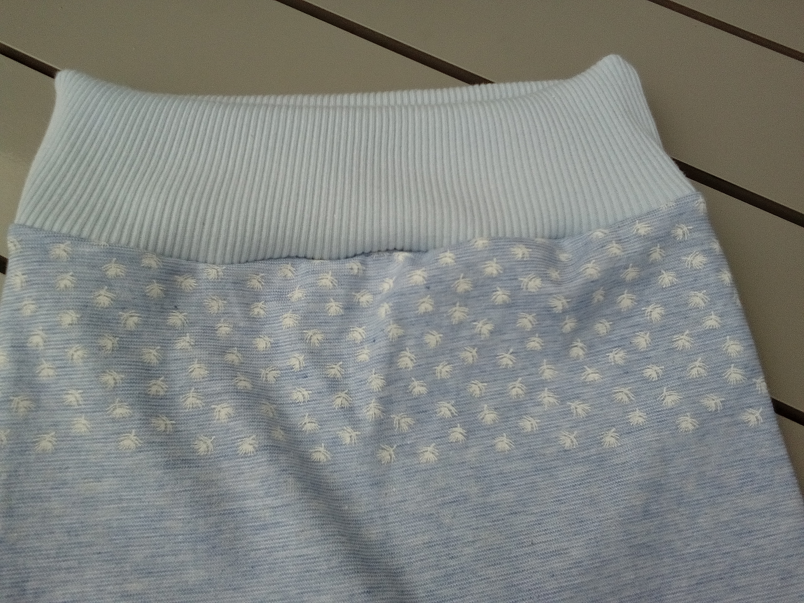 … et pour celui en jersey bleu j’ai recyclé un maillot en maille bleu ciel pour la ceinture.