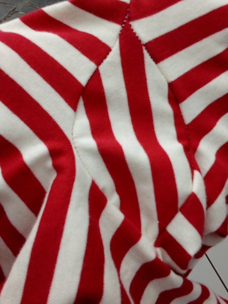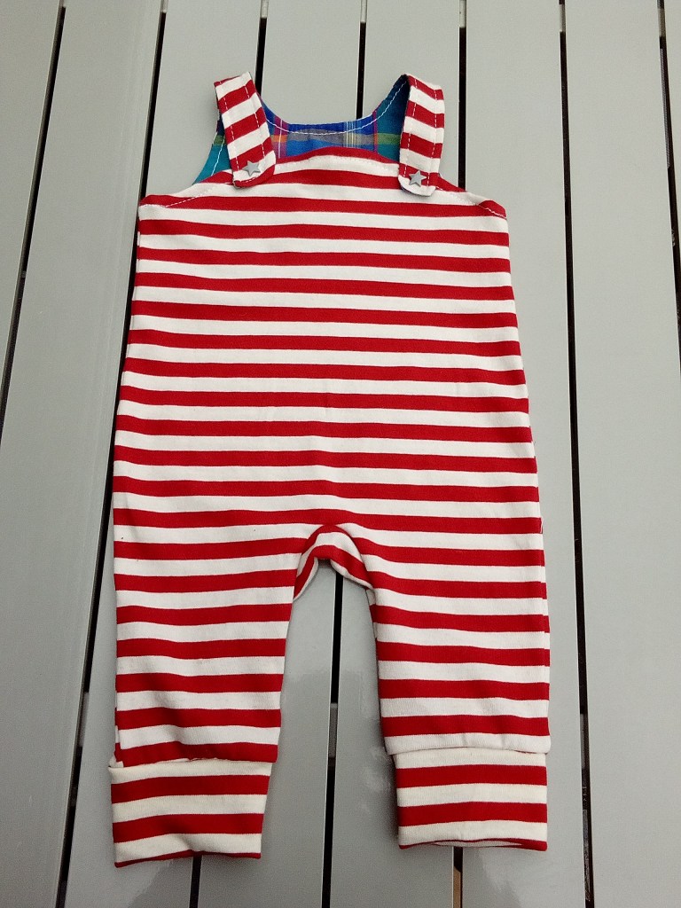 Bon voici donc mon jersey à rayures rouges de retour pour un pantalon et une salopette. Concernant le pantalon, pour lequel je n’ai fait aucune modification du patron, je le trouve, une fois terminé, carrément immense !! J’ai l’impression d’avoir cousu du trois voir six mois ce qui est drôlement embêtant quand je sais que le futur Petit Monsieur sera en plein hiver à cette période ! Bref… Avec un collant en laine dessous ou en repliant les bas et la ceinture ça va peut-être le faire ?