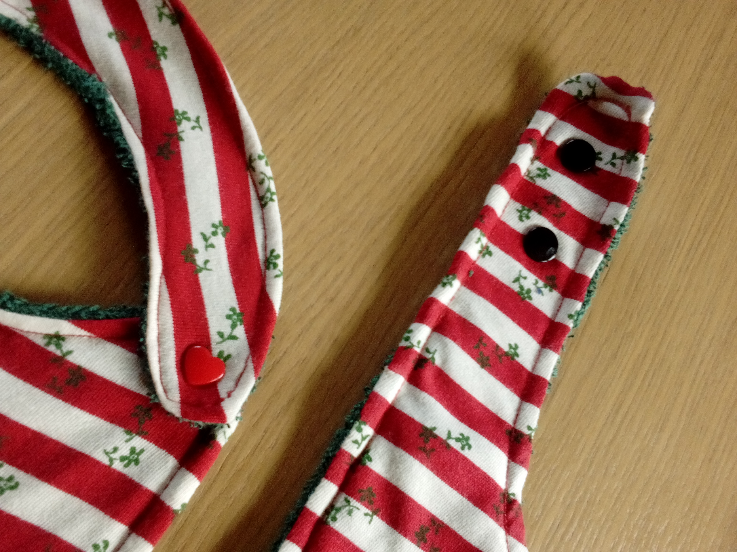 3 – Réaliser une surpiqûre au point droit ou au point zigzag selon votre tissu tout autour du bavoir pour bien maintenir les deux parties et fermer la petite ouverture