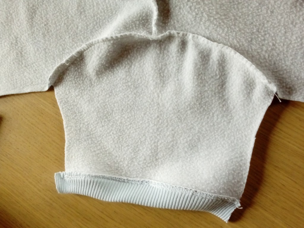 J’ai fait le dos en deux morceaux par manque de place dans mon sweat à recycler…