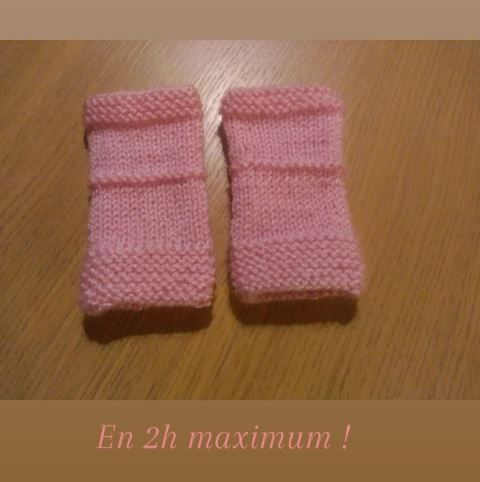 Pour Mistinguette je viens de lui tricoter en 2h maximum ces mini mitaines en laine rose bonbon (sa couleur préférée du moment), c’est tout simple à faire voilà comment j’ai procédé :