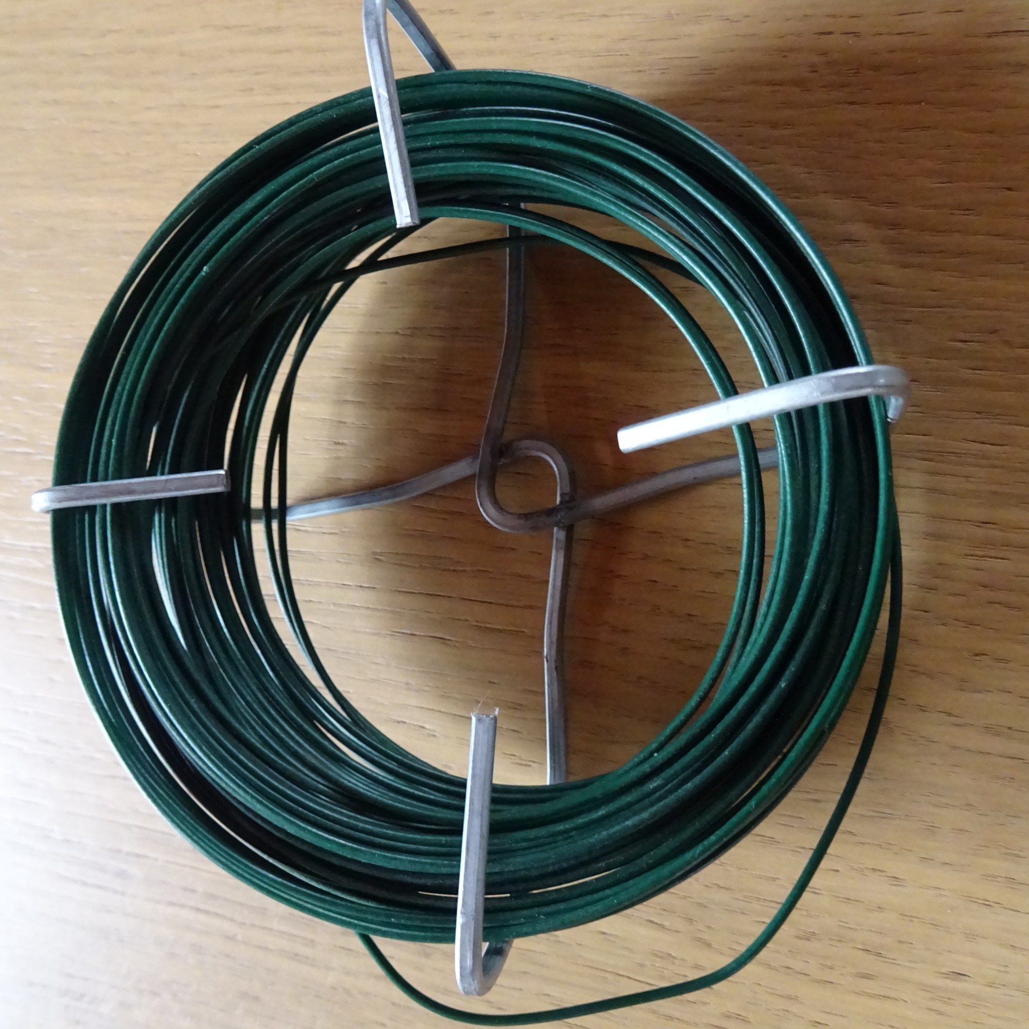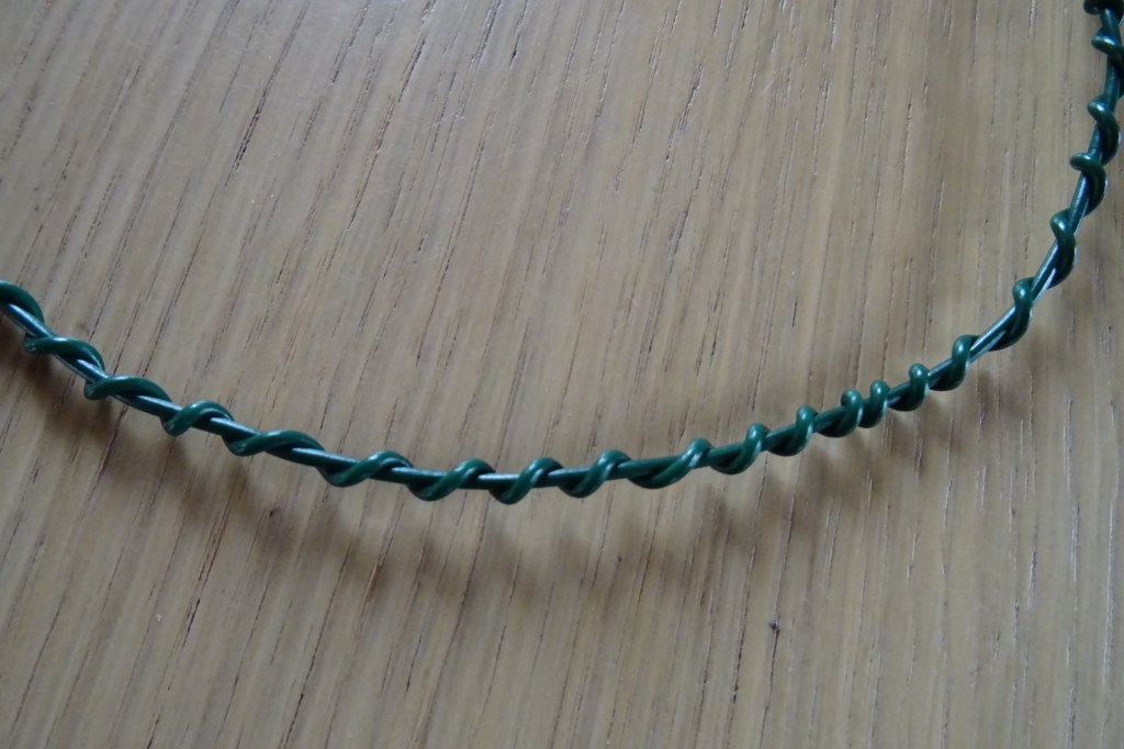 Bref, j’avais dans mes outils de jardinage ce fil vert et dans mes outils de bricolage ce fil en cuivre. Je les ai marié ensemble et voilà ce que ça donne.