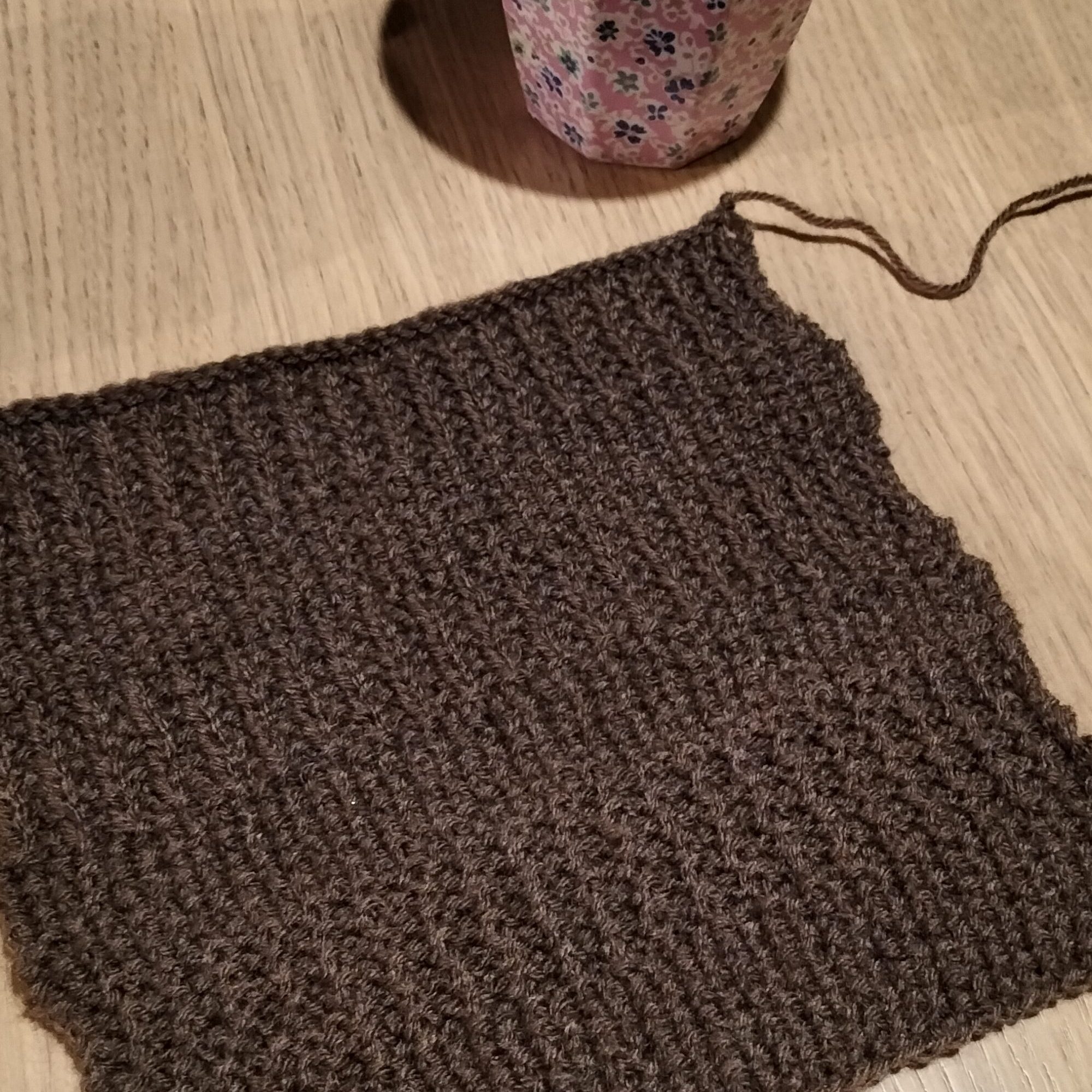 J’ai alterné sur trois à deux centimètres de haut ces deux points pour créer une structure plus horizontale. La différence est à peine visible mais la texture est intéressante au toucher pour un gilet avec de la grosse laine (taille 8 même 9) cela doit être sympa comme aspect.