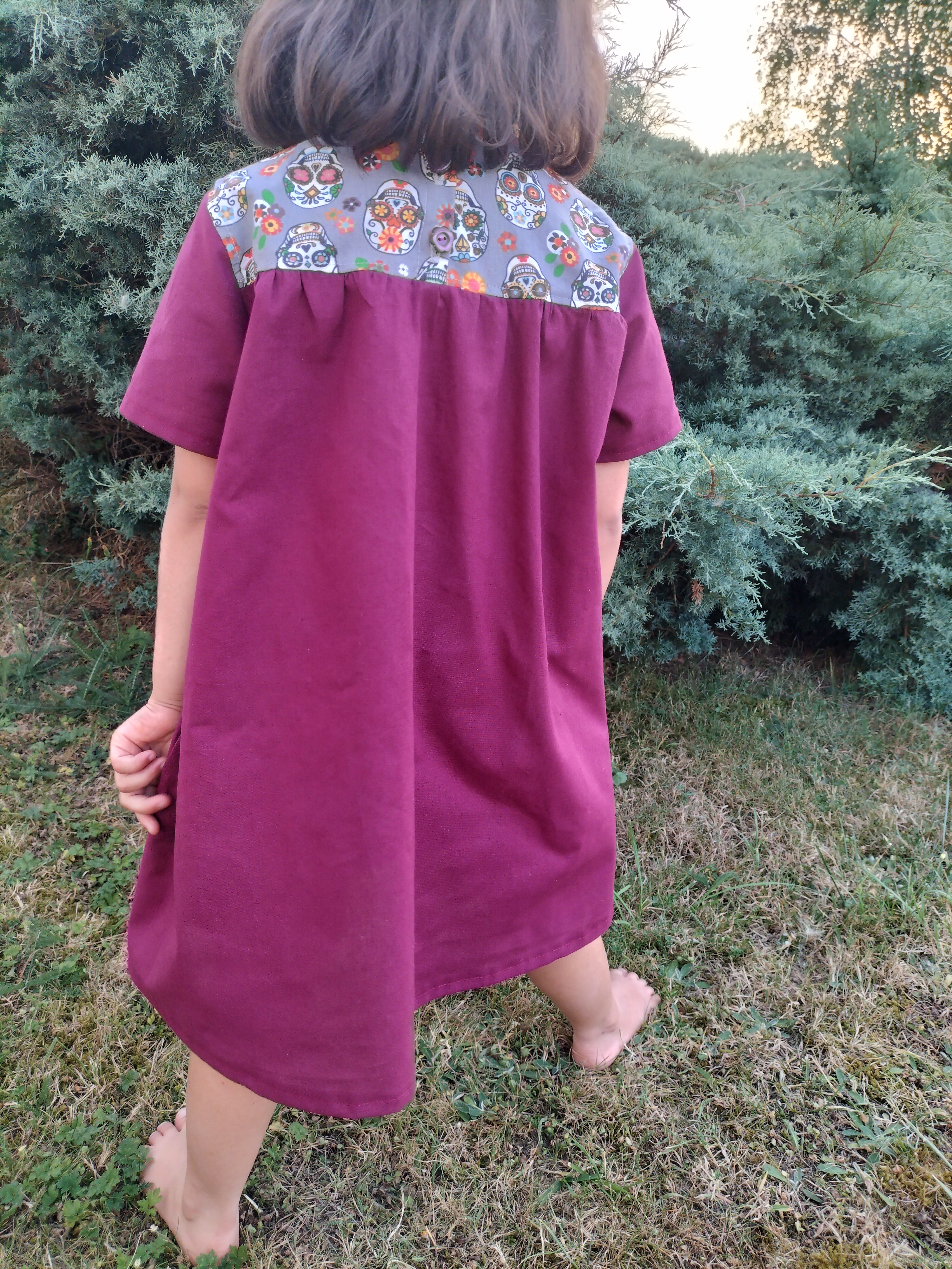 2. J’adore toutes ces jolies robes !! Bravo Lucile tes poulettes doivent être ravies ! Perso, je suis fan de l’aubergine /tête de mort ! J’adore le tissu, les couleurs et je la verrai bien en taille adulte 😅 ! Des bisettes 💕