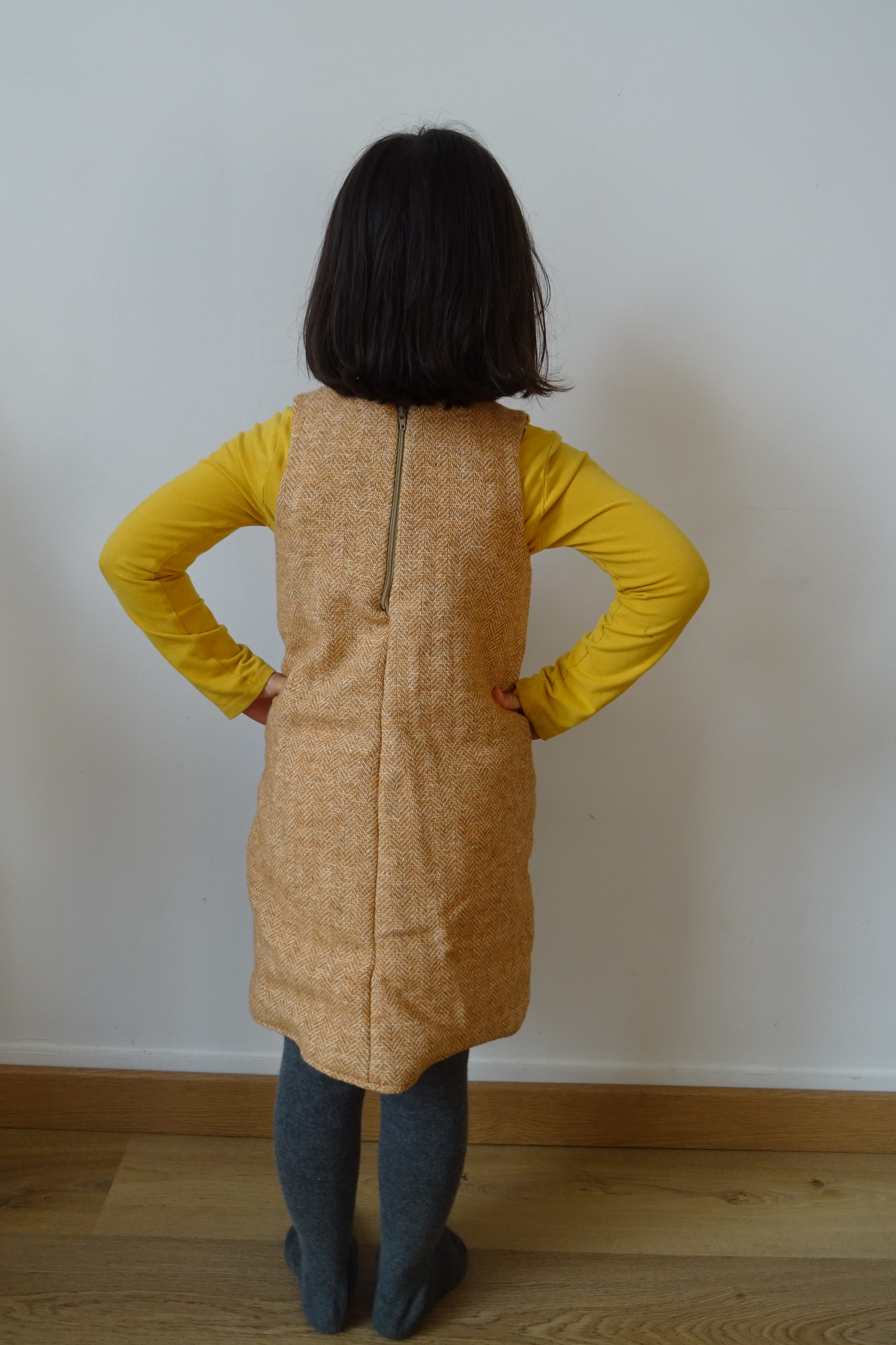 Mistinguette comme je vous l’ai déjà écrit récemment veut des robes, je lui ai donc cousue cette robe en tweed à partir de chutes plus ou moins grandes de lainage que j’avais utilisés pour moi ou sa sœur. Le modèle est issu toujours du même magazine Ottobre Design (et du même numéro ! je suis économe pas la peine d’acheter x numéro si le seul que vous avez a tous les modèles qui vous plaît.)