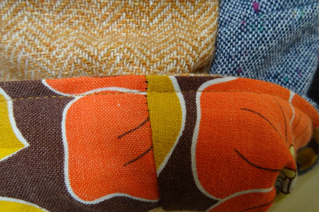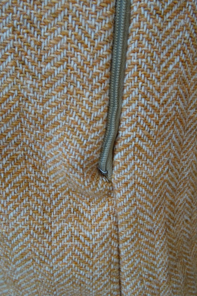 Relever le patron et couper tous les morceaux de tissu m’a pris une bonne après-midi. La doublure en coton imprimé est un tissu des années 70′ (véridique) qui revient de l’intérieur d’une caravane (récupéré par ma grand-mère toujours ! quelle sacrée mamie…) Le zip était déjà dans mon stock acheté pour un projet qui n’a pas été cousu ou qui ne correspondait pas au final, je ne sais plus. J’ai cousu au feeling, à l’instinct pour parler / écrire frenchy sans trop suivre les explications.