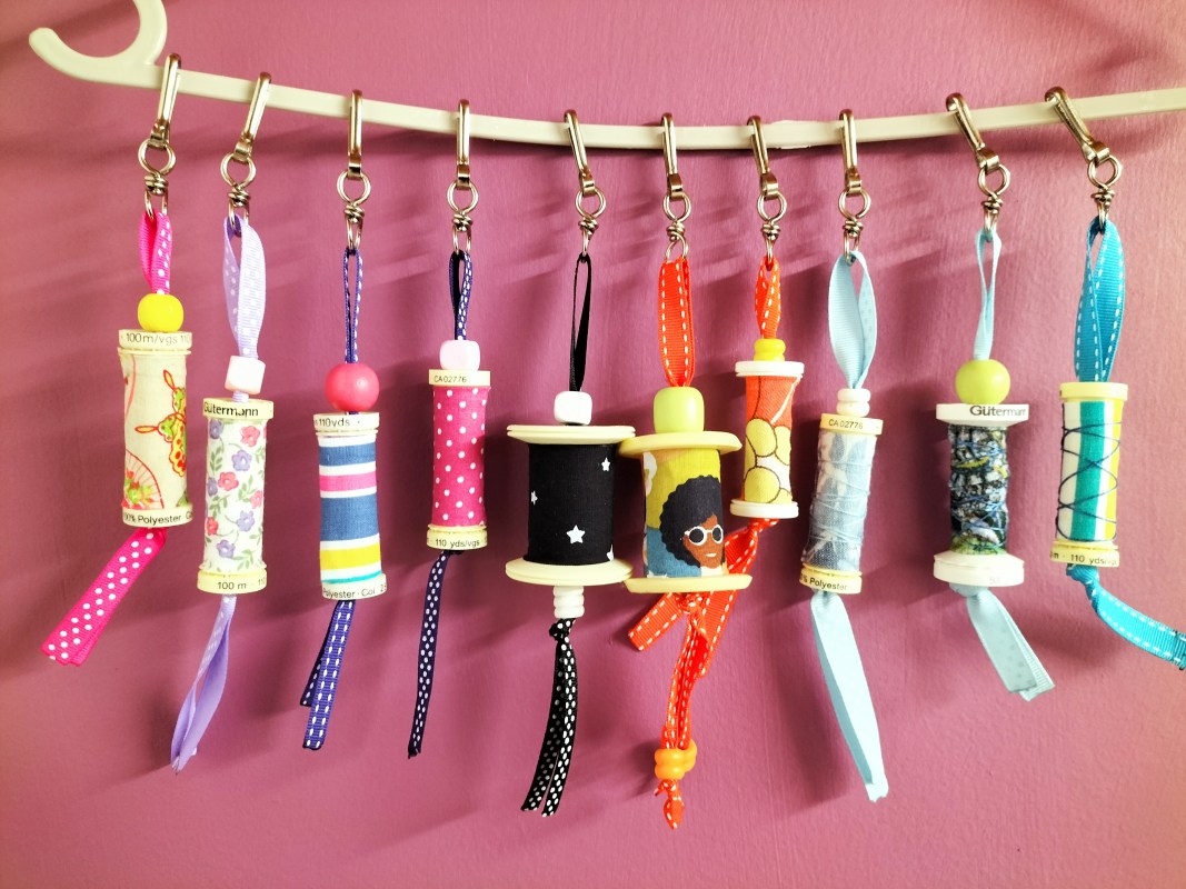 En faire un puis en faire deux puis finir par faire une série de porte-clés avec des bobines de fils recyclés parce qu’une fois lancée difficile de s’arrêter…