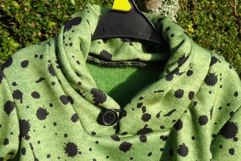 Même patron, autre tissu et quelques heures de couture après (2h30), voici un nouveau modèle à porter sans hésitation. Le tissu sweat polaire de montagne est bien chaud à l’intérieur pour les frimas hivernaux. Je coche donc une étoile de plus pour le défi « couds tes tissus 2023 » et liquide un morceau de ce joli coupon avec lequel je me suis déjà cousue une robe l’année dernière (que vous pouvez revoir ici). Il me reste encore un bon bout avec lequel je pourrais éventuellement lui refaire un sweat en taille 4 ans l’année prochaine ou même une taille un peu plus grande. A l’époque j’en avais acheté 3 m… Cela représente quelques belles pièces cousues main !