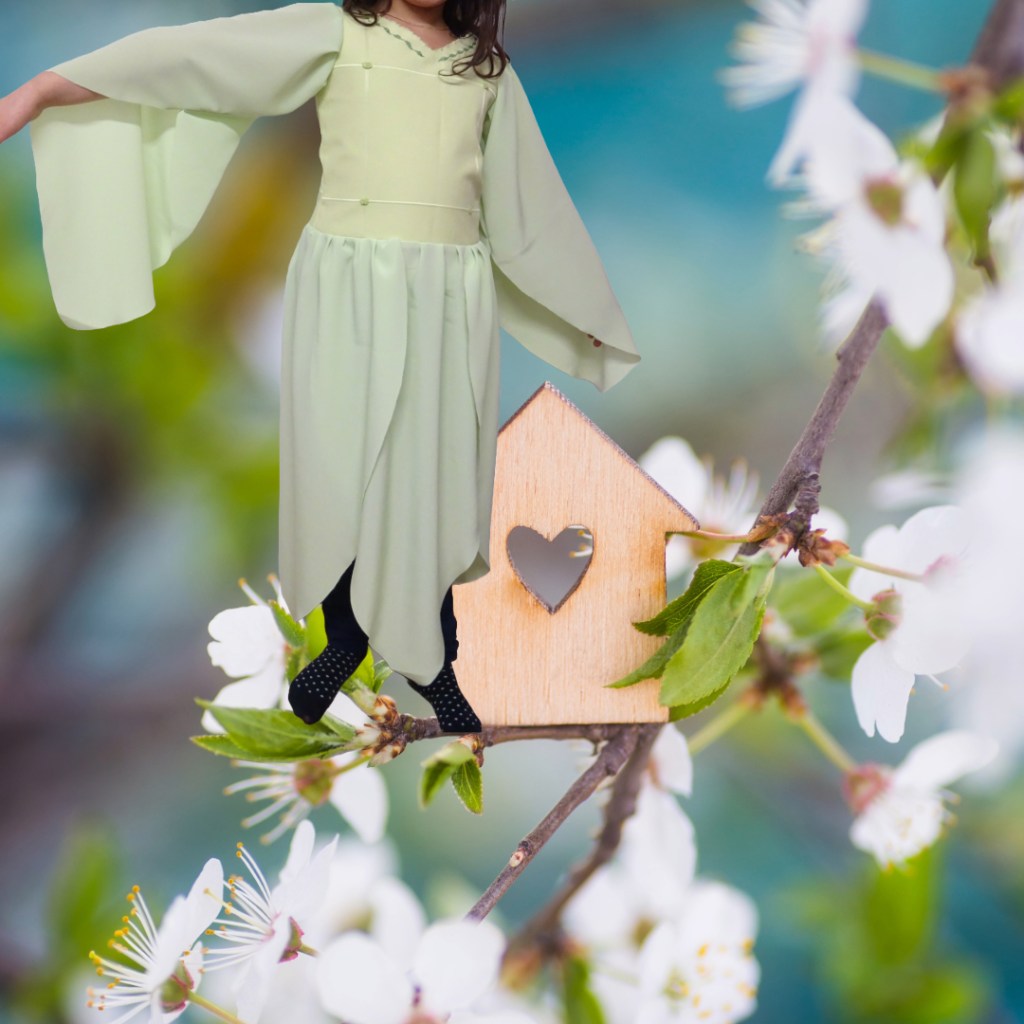 Donc après avoir demandé à ces deux jeunes loulous ce qu’ils souhaitaient comme déguisement, fait le tour des magasins histoire de se déculpabiliser de passer autant de temps seule dans mon atelier avec Mac ou de trouver le costume de leurs rêves à savoir : un costume de fée VERT oui pas rose, ni bleu ni je ne sais pas quelle autre couleur qui existe dans les magasins non VERT !! accompagné d’un autre challenge : des ailes (vertes aussi). Pas trouvé, sur le net oui mais pas dans les magasins, à devenir zinzin autant y regarder de plus près et faire un tour au sous-sol pour fouiner dans les caisses de tissus nouvellement arrivées (enfin en septembre mais c’est nouveau puisque nous étions en février, donc quelques mois plus tard). Et là bingo ! Je vous le donne en mille, tout un assortiment de tissus verts, du clair au plus foncé, de la mousseline, du coton fin ou épais, bref de quoi faire un costume (des ailes ? on verra après !). Et me voilà à gamberger sur le modèle, alors je regarde des modèles sur internet et quelques jours plus tard, je sors mes crayons à dessin et fait une réplique de costume de la fée Clochette (plagiat ouais j’assume).